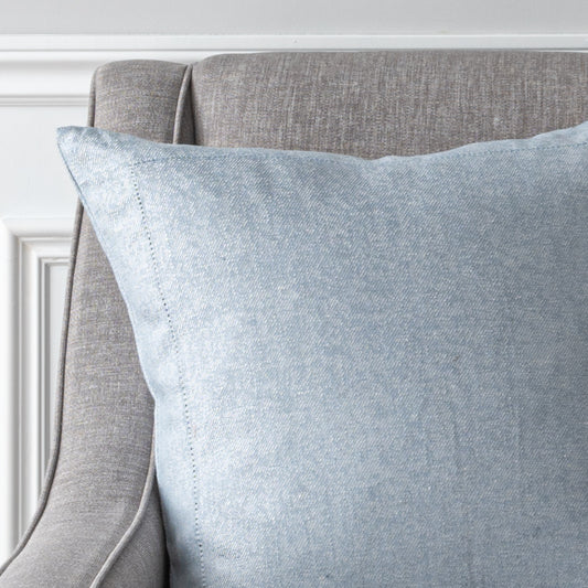 Hand Block Printed Cotton Pillowcase Set | Light Blue Stripe