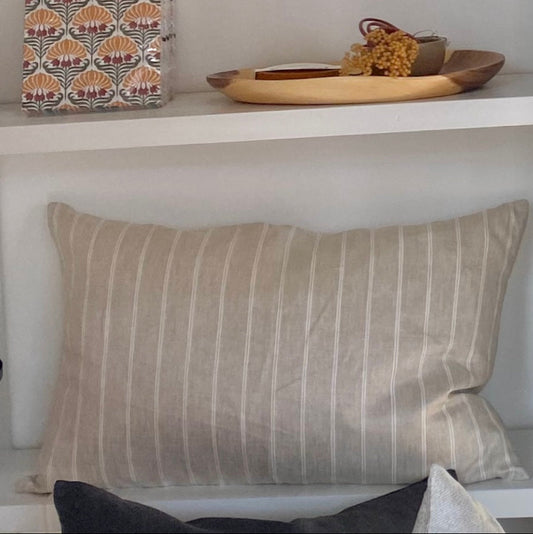 Hand Block Printed Cotton Pillowcase Set | Indigo Stripe