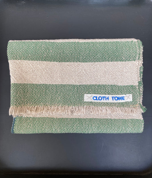 Handwoven | Organic Linen & Cotton Hand Towel | Green Stripes