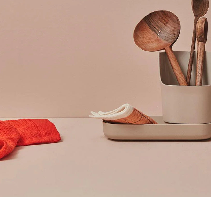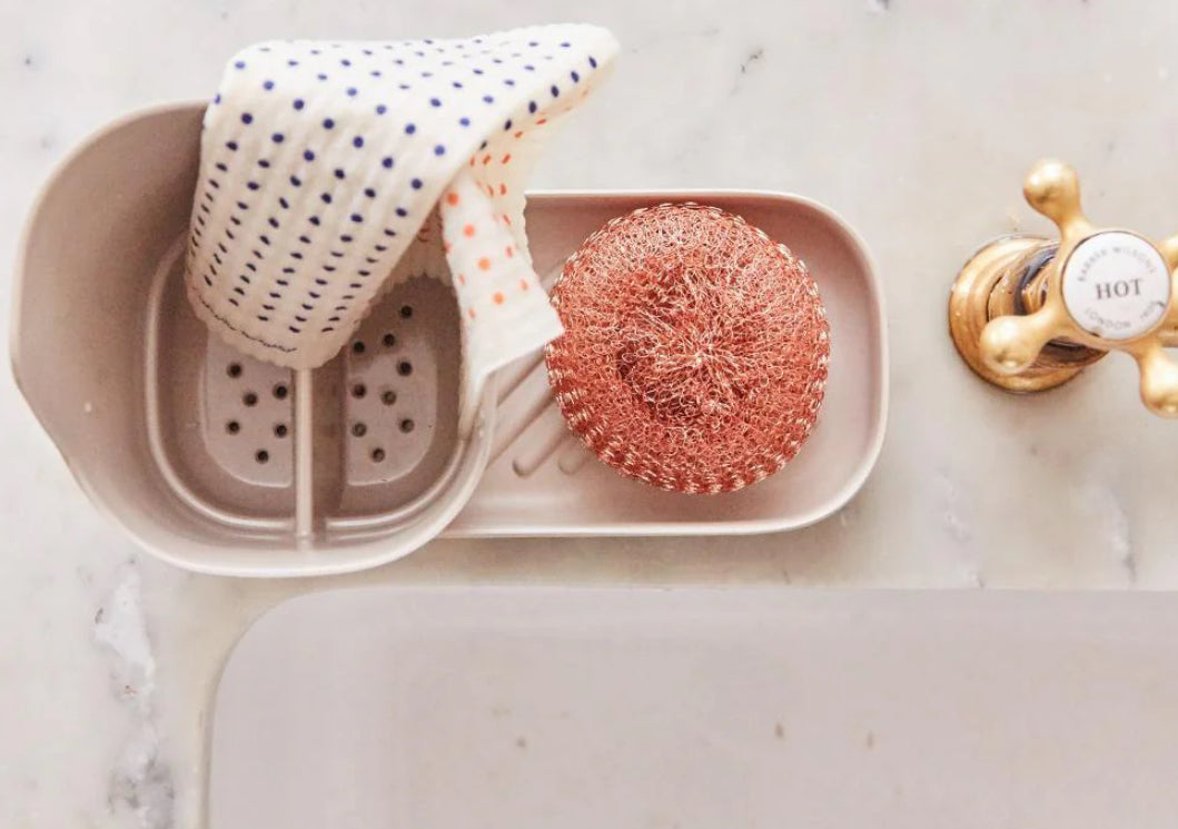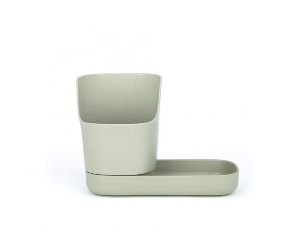 Make space for this good-looking 2-piece counter organiser! This sink caddy features a ribbed, non-slip base roomy enough to hold a liquid soap dispenser or hand soap. It also doubles as a reservoir to collect drained water, making it ideal for drying cutlery and utensils. Its main container features separate compartments to organize and store a brush and sponge. Bonus - Dismantles for easy cleaning in the dishwasher.