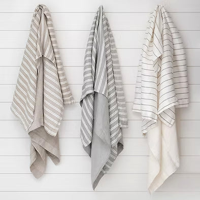 The St Genève Forte linen towels are light and absorbent, giving your home a spa-like feel. Their woven design makes them a popular choice in Europe, since they can be washed with other fabrics without shedding lint or snagging like pile towels.