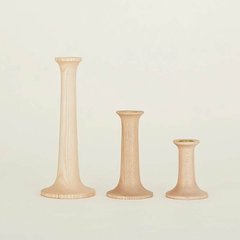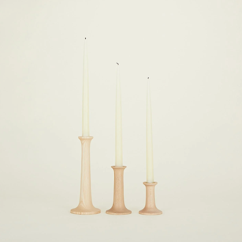 Hawkins NY Simple Candleholders are smooth maple with a matte finish, inspired by early-American purist design and industrial smoke stacks.