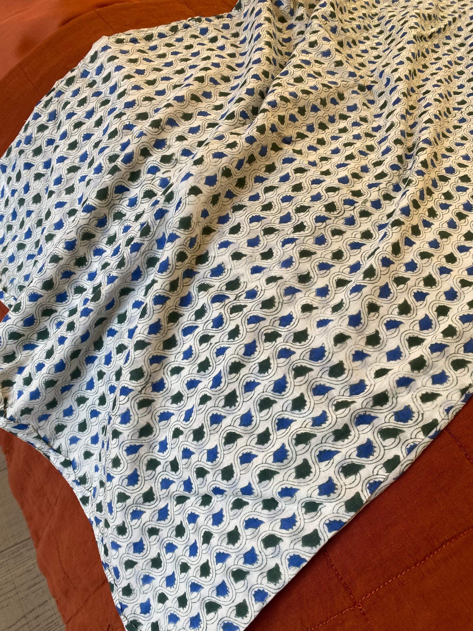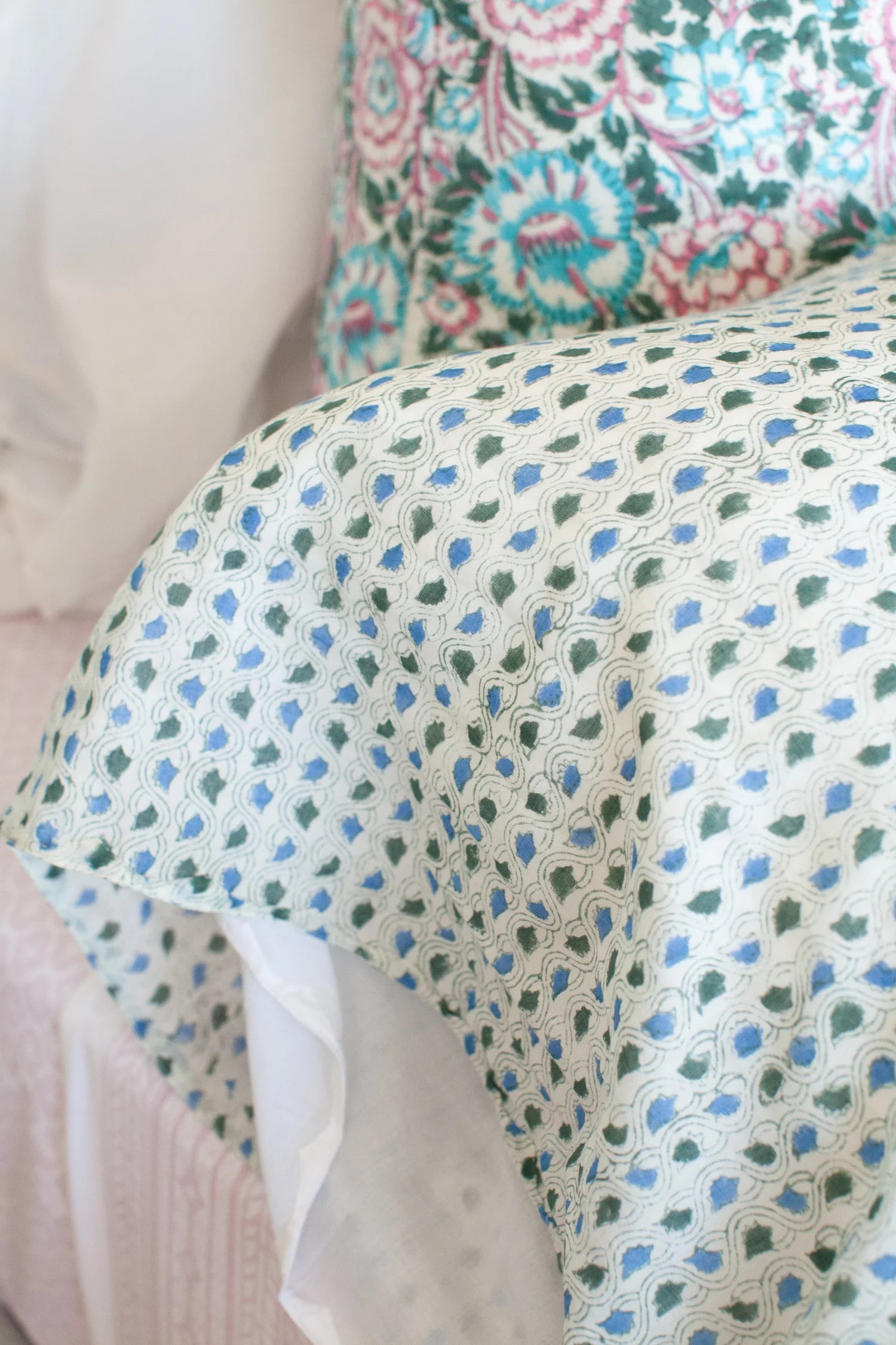 Hand Block Printed Cotton Pillowcase Set | Blue Chain