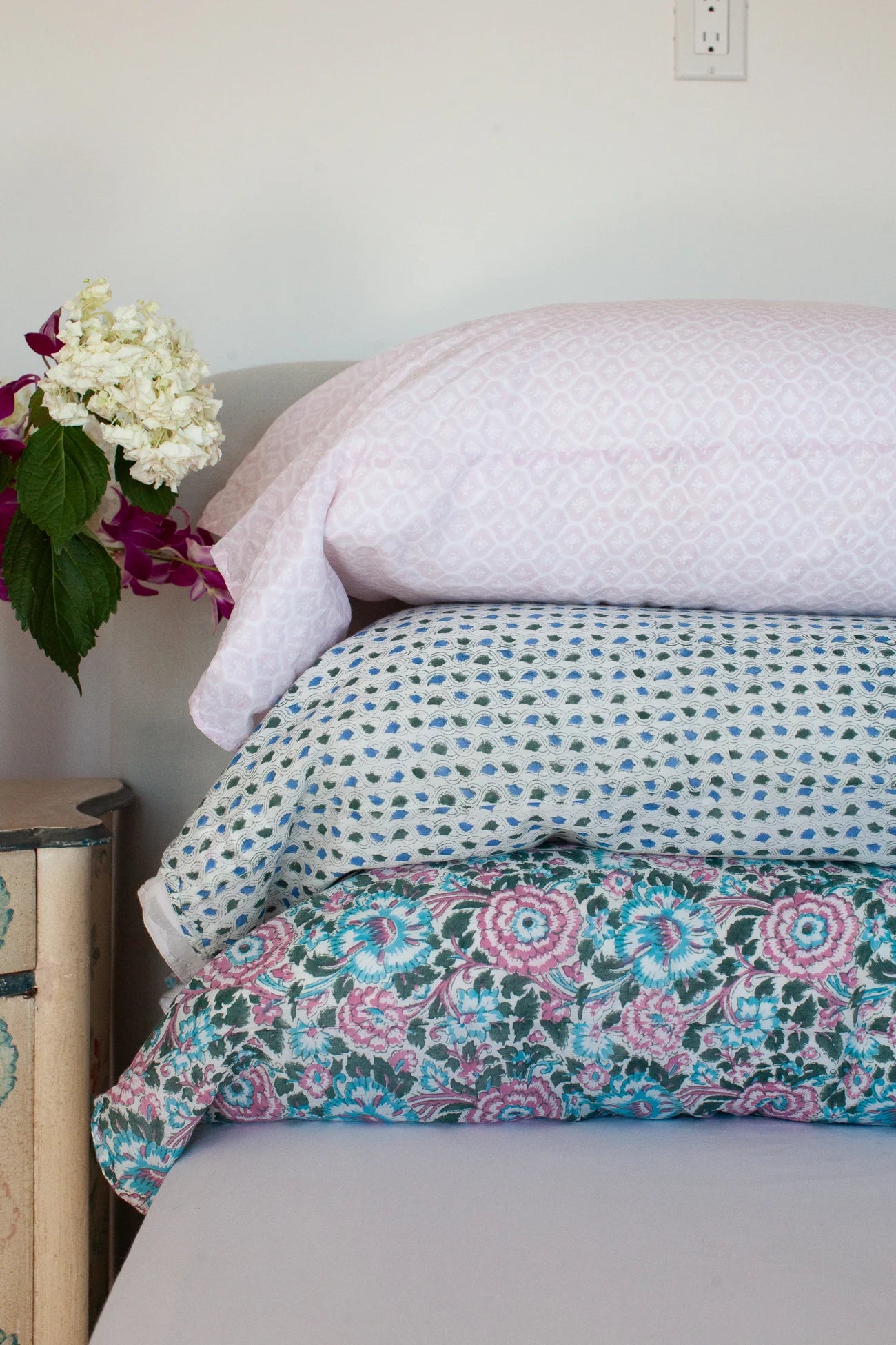 Kerry's Pillowcases offer the epitome of luxury with their highest-quality, soft Indian cotton. Each pillowcase is meticulously crafted with hand applique trim, adding a touch of sophistication and completing the distinctive Kerry Cassill aesthetic. With the ability to mix and match pillowcases from different seasons, customers have the flexibility to create their own unique combinations.