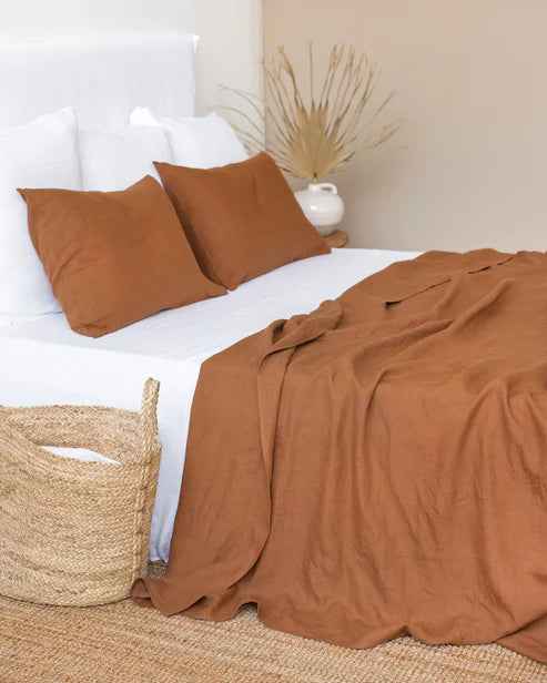 We always recommend washing linen materials separately in lukewarm water 40°C/104°F or even cold water in a gentle machine cycle with the mild detergent formulated for delicate or linen fabrics. Do not use bleaching or detergents with colour brighteners as they can discolour and weaken your linen sheets. Do not overload your machine, rinse your linen properly in order to remove any detergent or fabric softener residue.