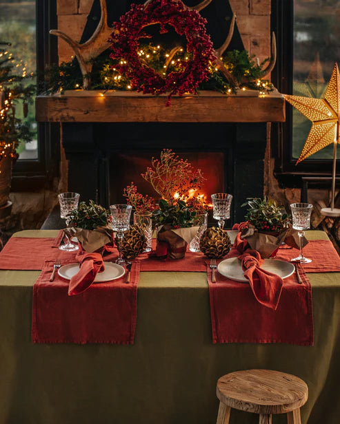 Be it casual dinners or formal occasions, this linen tablecloth goes well with every mood and setting. Finished with a simple seam, it gives off a contemporary look and is easy to mix and match with linen napkins, runners, and placemats.