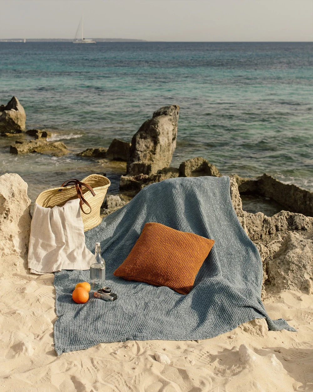 Spruce up your living room or bedroom with this cozy-looking throw pillow in a puffy waffle weave. The natural properties of linen and cotton guarantee softness and comfort.