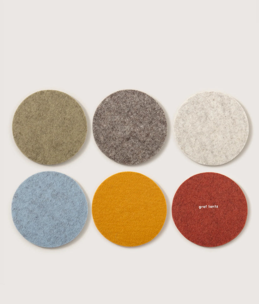 Graf Lantz traditional Bierfilzl ("Beer Felt") are the highest quality German merino wool felt coasters on the market today. Their clean and minimal execution offers an unexpected textural and refined modern heritage element to any home decor. Set includes 4 hand-cut heavy duty 5mm thick wool felt coasters to provide extra surface protection.